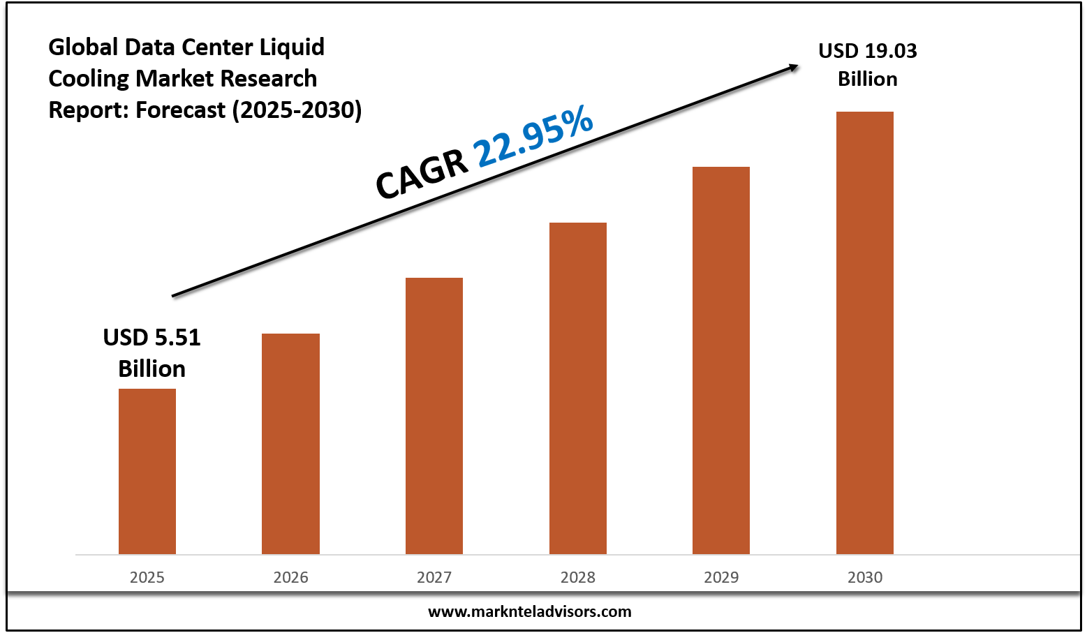 The global Data Center Liquid Cooling Market is on track to grow from approximately 5.51billionin2025toanimpressive19.03 billion by 2030, reflecting a remarkable compound annual growth rate (CAGR) of 22.95%. Key factors propelling this growth include the increasing deployment of data centers in the IT and telecom sectors, a focus on energy efficiency, and the adoption of high thermal design power (TDP) hardware. With a burgeoning demand for advanced cooling solutions, the market is set to transform how data centers operate, emphasizing reliability and efficiency.