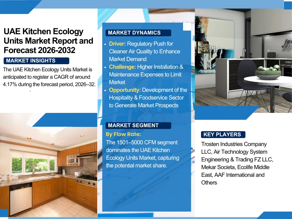 According to the latest report by The Report Cube, study UAE Kitchen Ecology Units Market is anticipated to register a CAGR of around 4.17% during the forecast period, 2026–32.