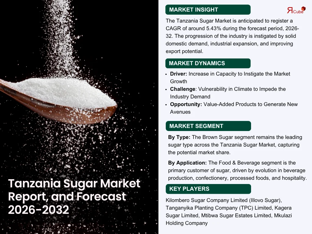 According to the latest report by The Report Cube, study Tanzania Sugar Market is anticipated to register a CAGR of around 5.43% during the forecast period, 2026-32.