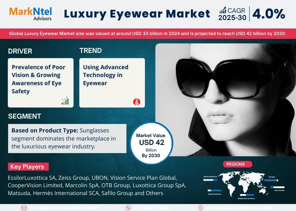 MarkNtel Advisors, a leading market research and consulting firm, has announced the release of its latest study titled Luxury Eyewear Market Research Report: Forecast (2025-2030). This report provides a detailed assessment of the Luxury Eyewear Market, covering its evolving dynamics, emerging trends, key growth drivers, major challenges, and competitive landscape.