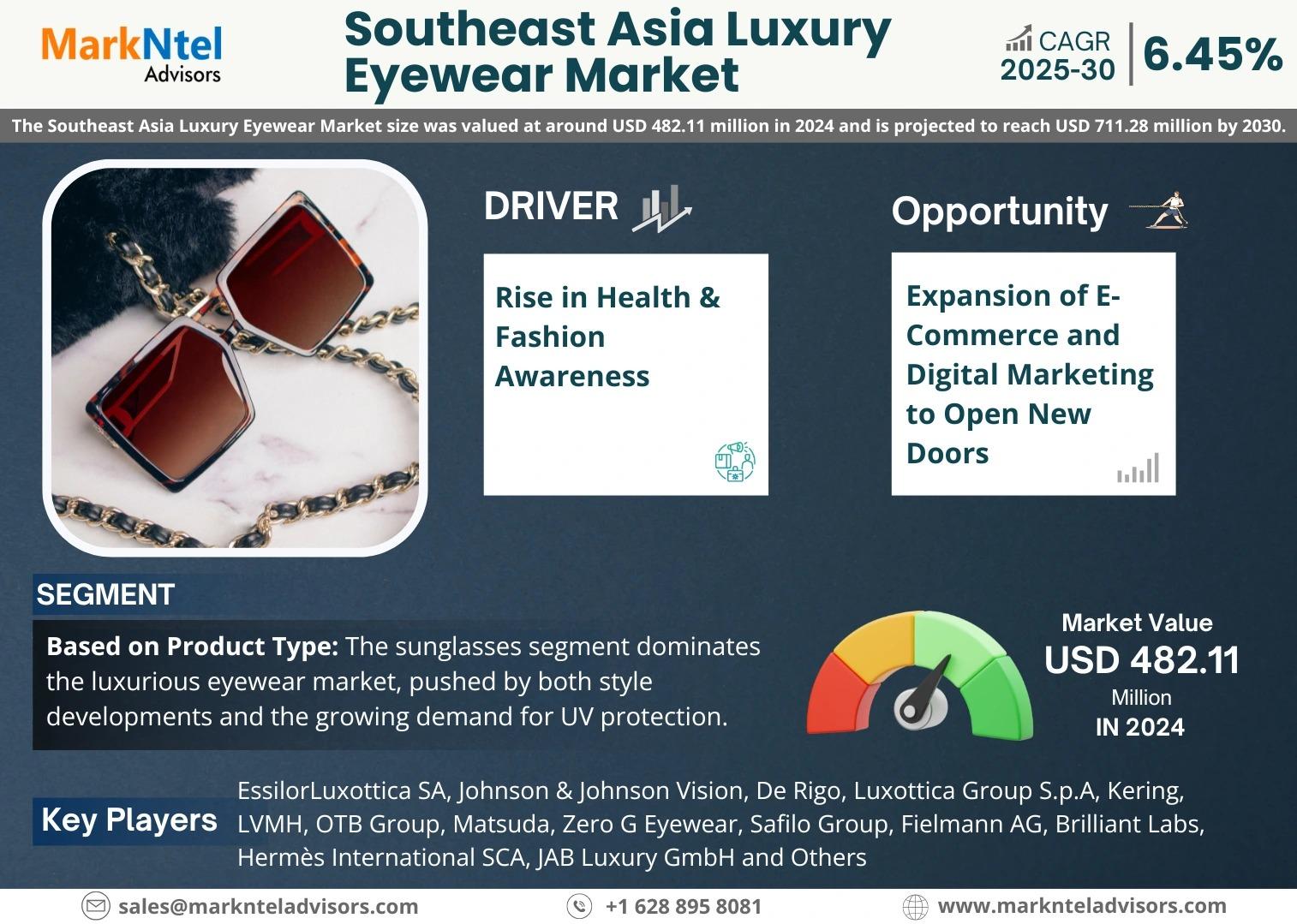 MarkNtel Advisors, a leading market research and consulting firm, has announced the release of its latest study titled Southeast Asia Luxury Eyewear Market Research Report: Forecast (2025-2030). This report provides a detailed assessment of the Southeast Asia Luxury Eyewear Market, covering its evolving dynamics, emerging trends, key growth drivers, major challenges, and competitive landscape.