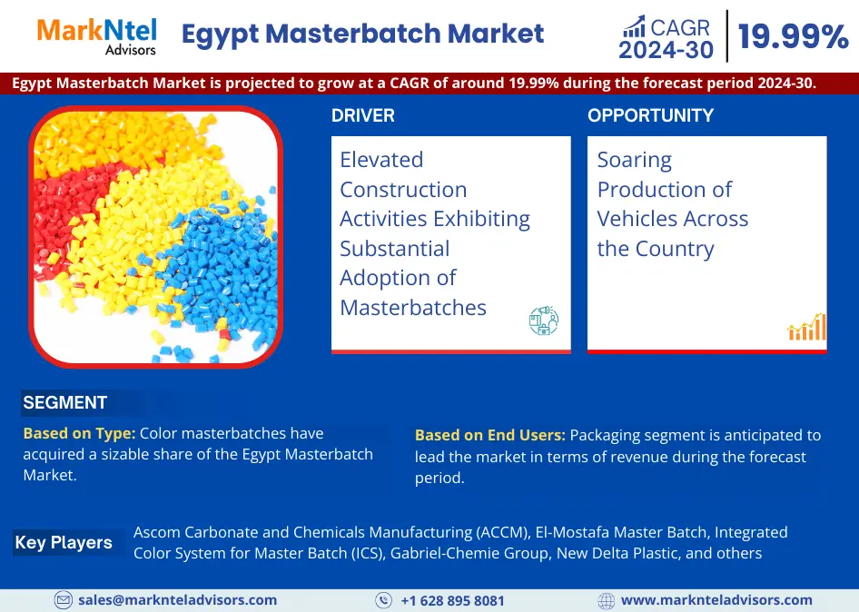 MarkNtel Advisors, a leading market research and consulting firm, has announced the release latest of its study titled Egypt Masterbatch Market Research Report: Forecast (2024–2030). This report provides a detailed assessment of the Egypt Masterbatch Market, covering its evolving dynamics, emerging trends, key growth drivers, major challenges, and competitive landscape.