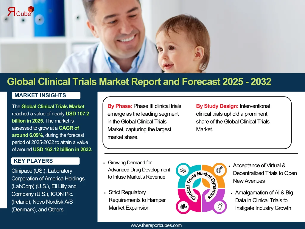 https://www.thereportcubes.com/report-store/clinical-trials-marketGlobal Clinical Trials Market Size, Share & Forecast (2026–2032): Growth Drivers and Key Trends Market Size (2025): USD 107.2 billion Market Size (2032): USD 162.12 billion CAGR (2025–2032): 6.09% Top Companies in Clinical Trials Market: Clinipace, Laboratory Corporation of America Holdings (LabCorp), Eli Lilly and Company, ICON Plc., Novo Nordisk A/S, Parexel International Corporation, Pfizer Inc., PPD, Inc., IQVIA, Sanofi, F. Hoffmann-La Roche Ltd, Alcami Corporation, Inc., Accell Clinical Research LLC, Congenix LLP, Labcorp Drug Development. https://www.thereportcubes.com/report-store/clinical-trials-market0 Comments 0 Shares 6 Views -